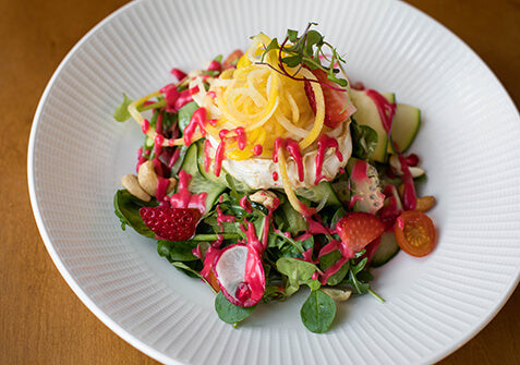 Salate: Dieser Fruchtessig ist sehr vielseitig. Seine milde Säure harmoniert perfekt mit dem einzigartigen Weinbergpfirsich-Aroma. Er ist deshalb wie gemacht für eine klassische Vinaigrette und macht deine Salate zu einem echten Erlebnis.