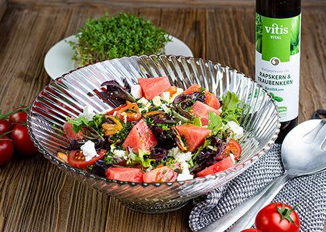 Unser Vitis Traubenkernöl ist ein wahrer Alleskönner. Es ist ein kaltgepresstes Speiseöl, dass 100% natürlich und deshalb sehr gut verträglich ist. Dies ist der Grund, warum es wie gemacht ist, für die Unterstützung deiner gesunden Ernährung. Unser Traubenkernöl besticht dabei durch seinen intensiven und kräftigen Geschmack, sowie durch seinen hohen Anteil an mehrfach ungesättigten Fettsäuren.